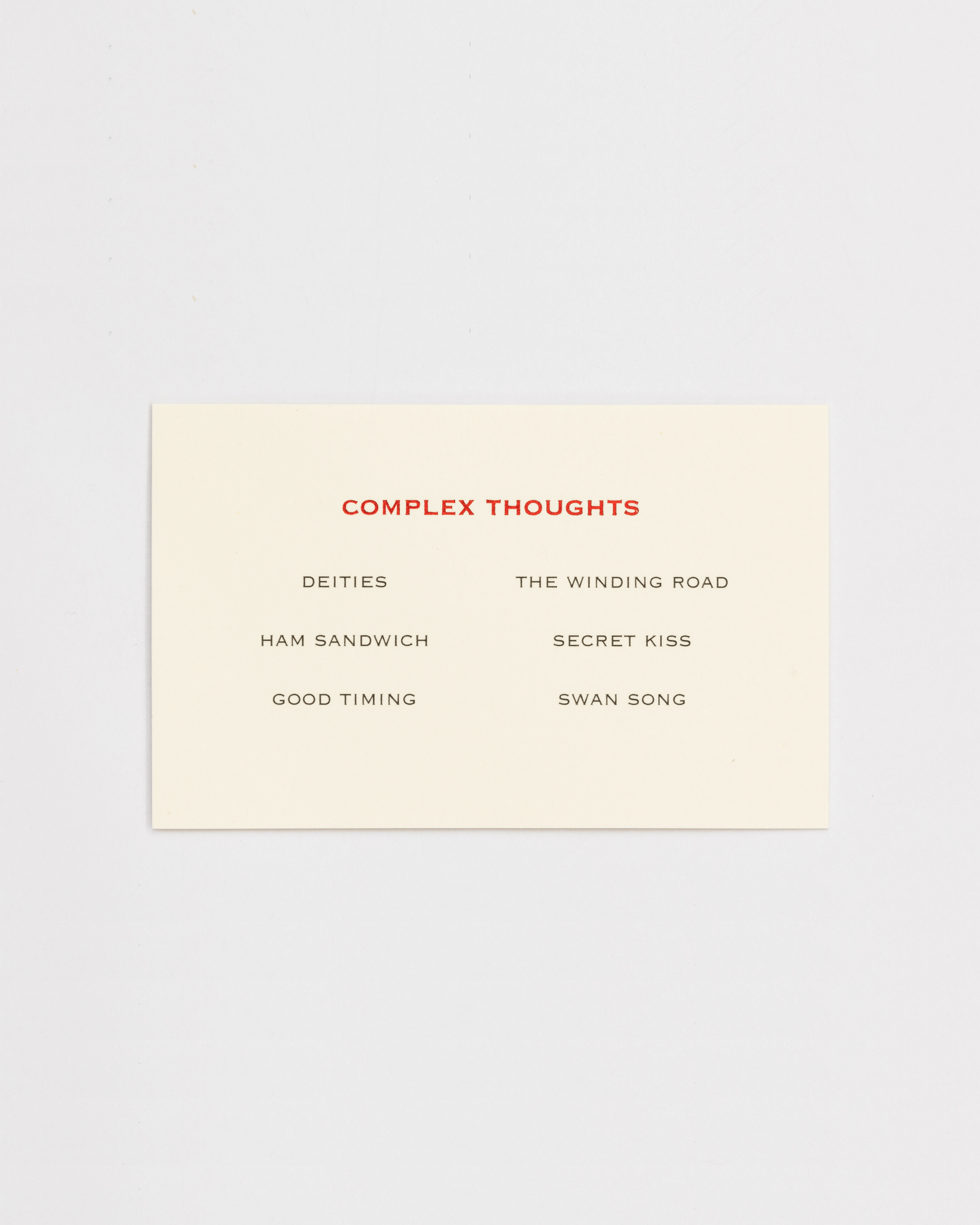 Hand-printed card features the thoughts of the chewer.